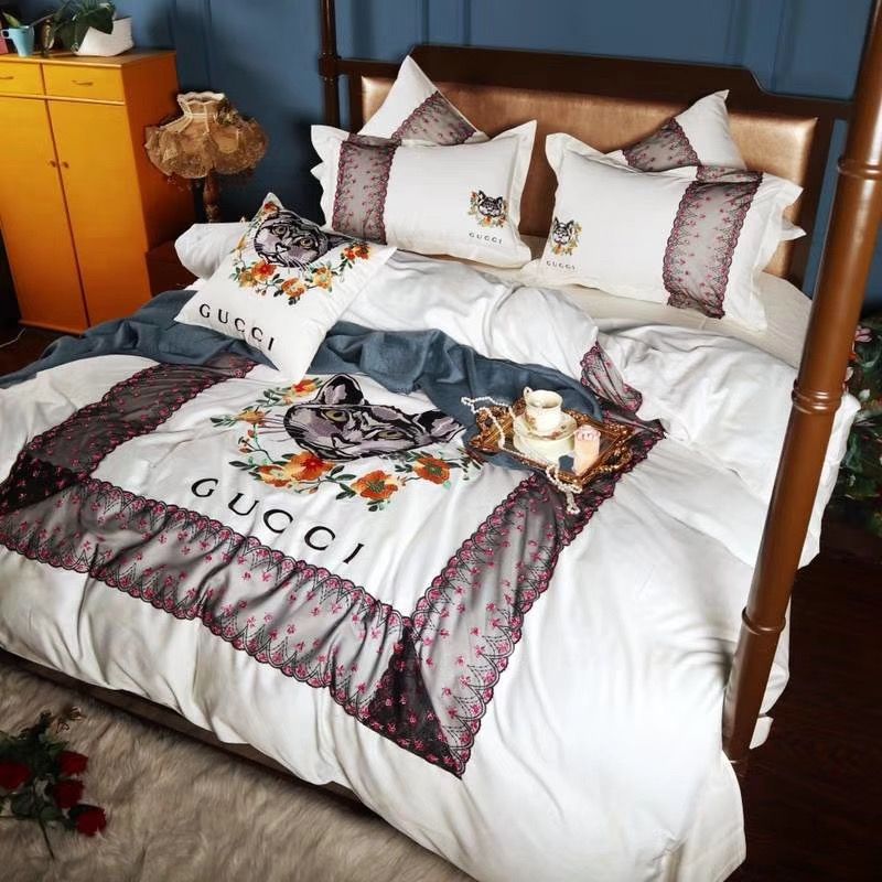 Cat Embroidery Design Bedding Suit Sheet Pillowcase Bed Cover Sets